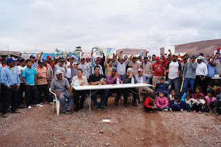 La empresa se afana inútilmente por minar el apoyo que los huelguistas reciben de las comunidades aledañas. “¿Cómo esperan ponerlos en nuestra contra, si son nuestros padres, nuestras madres, nuestros hermanos? Nosotros somos hijos de los ejidatarios”. Además, la gente de los alrededores no está muy conforme con la minera. En la comunidad de Boquillas nos dijeron que la minera no hace nada por evitar las nubes de polvo que cubren su pueblo cuando se está moliendo el material, que sus niños se enferman todas las semanas de las vías respiratorias, que están contaminando sus presas y pozos. Además, la gente de los alrededores está indignada por el proceder de la minera que contrató golpeadores para romper el paro cuando recién comenzaba. “¡Eso no está en la biblia!”, nos dijo don Juan Esparza, habitante de Boquillas, mientras nos mostraba las cuarteaduras que las explosiones han causado en su vivienda. Él, como mucha gente de los pueblos cercanos, no puede creer todavía que exista gente capaz de hacer lo que hizo la minera: acarrear extraños, algunos de ellos drogados o alcoholizados, para golpear a sus trabajadores que sólo luchan por sus derechos. “Eso no se perdona, eso no puede ser”. “Creen que por dos piñatas que le han traído a nuestros niños ya les debemos algo. Nosotros estamos para apoyar a nuestros hijos y a los trabajadores”.